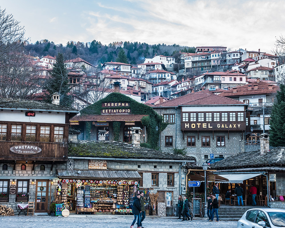 Η κεντρική πλατεία με τα γραφικά σοκάκια και τα πέτρινα σπίτια, τα ταβερνάκια , και τα παραδοσιακά καταστήματα σε φιλοξενούν, προσφέροντας σου την παράδοση στα χέρια..